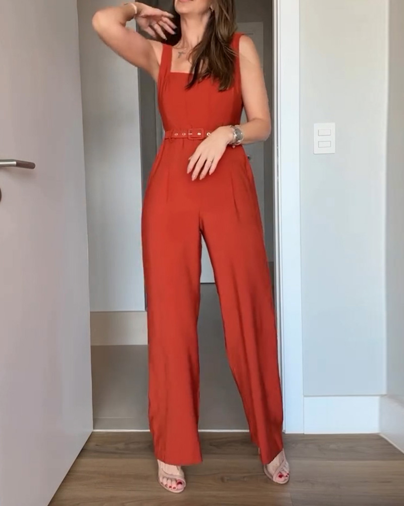 Classic Simple Solid Color Jumpsuit (With Belt)