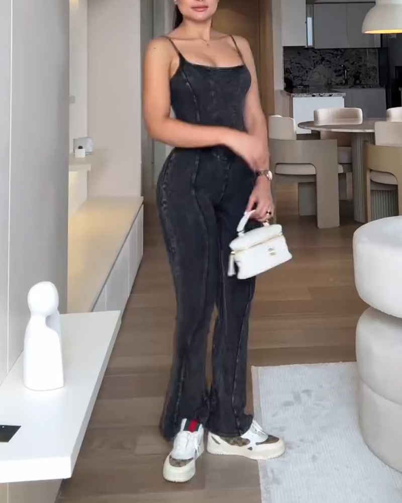 Product Name: Ladies' Sexy Tight Washed Jumpsuit