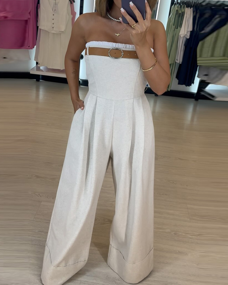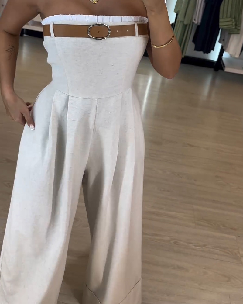 Product Name: Spliced Breathable Jumpsuit (Without Belt)