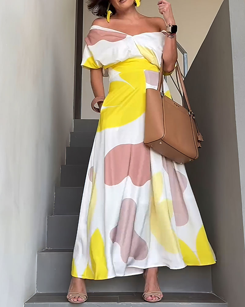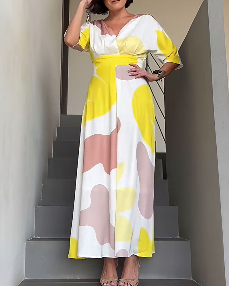 Elegant V-Neck Mid-Sleeve Maxi Dress