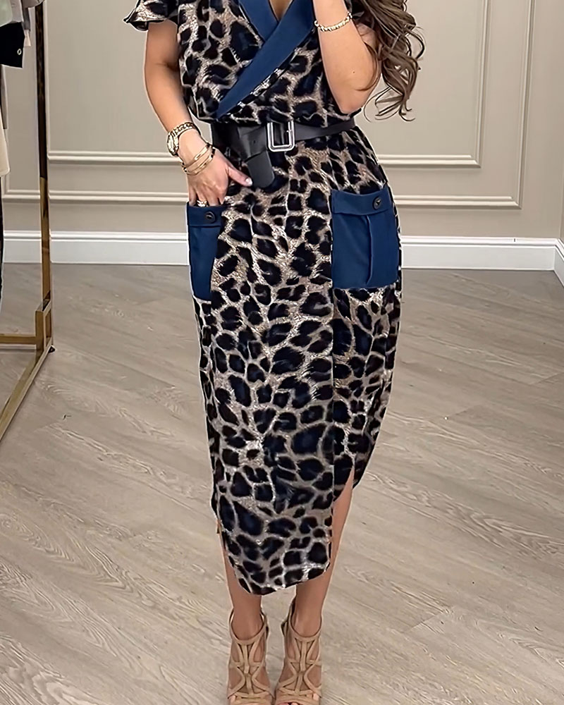 Color Block Irregular Hem Midi Dress(Without Belt)