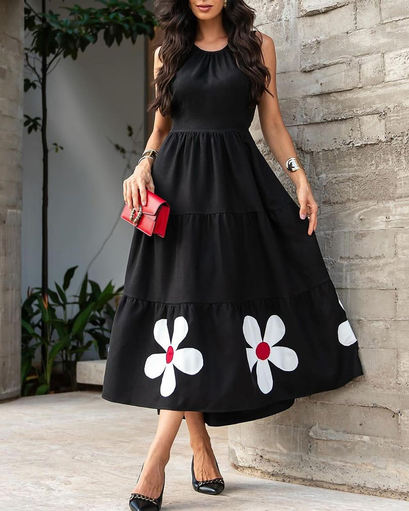 Product Name: Simple Casual Printed Sleeveless Midi Dres
