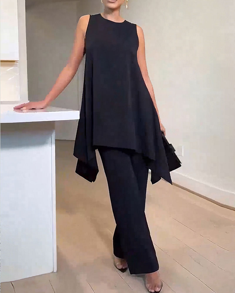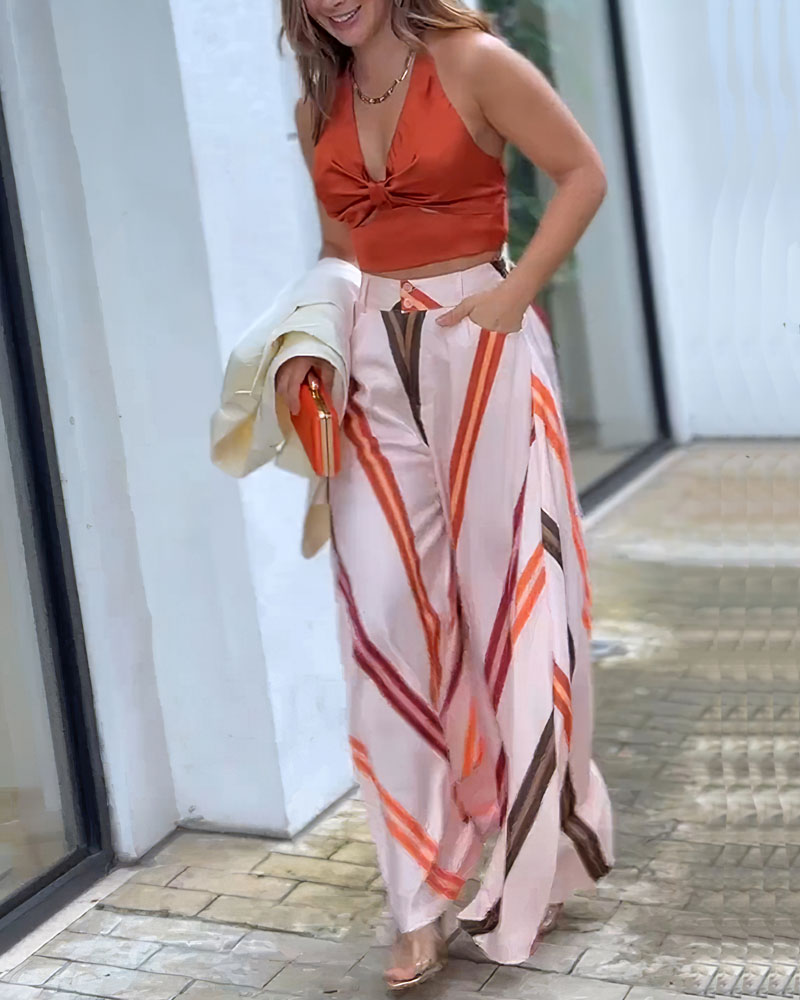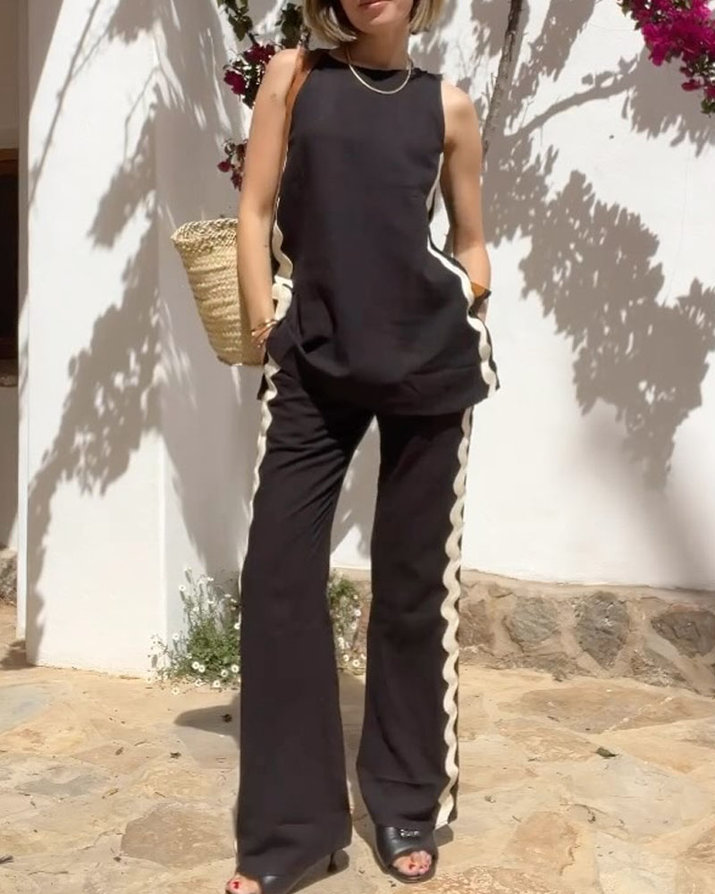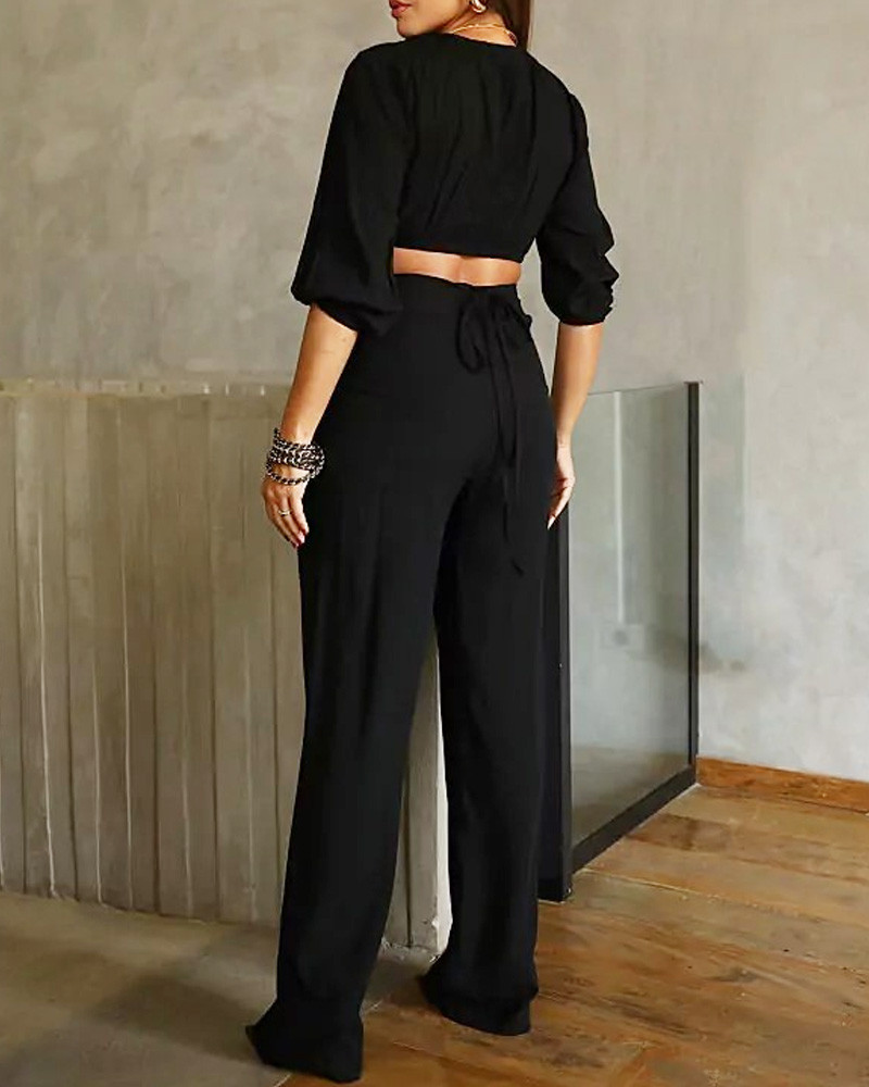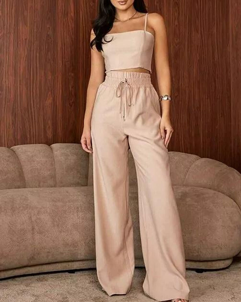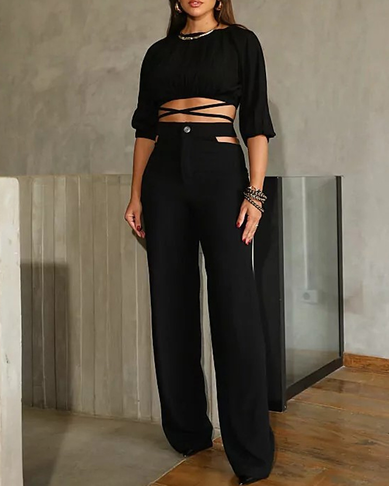 Tie-Drawstring Top and Straight-Leg Lounge Pants Set