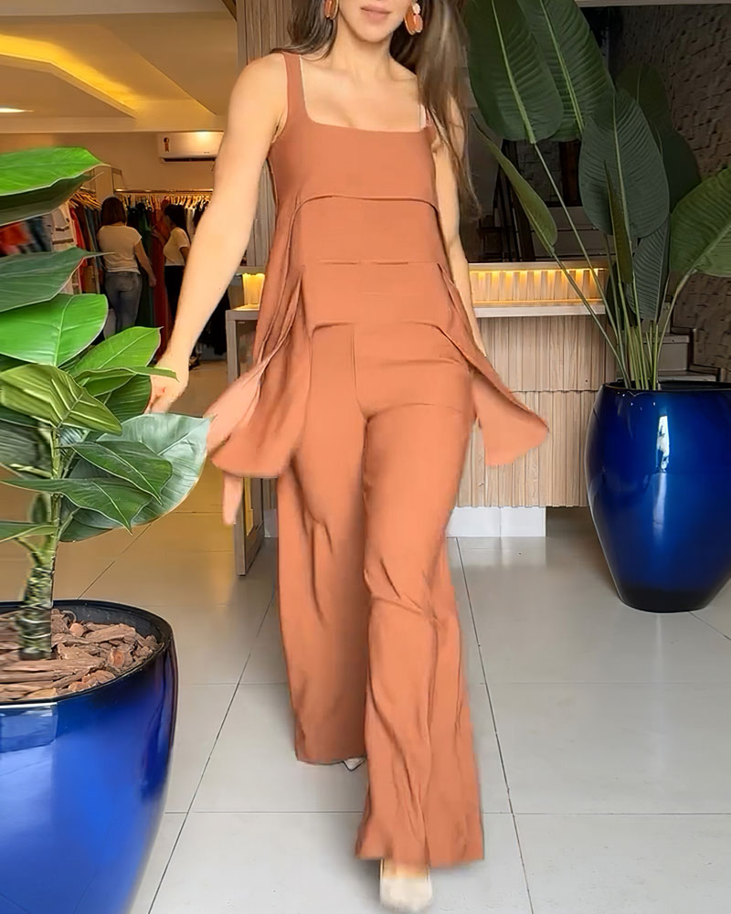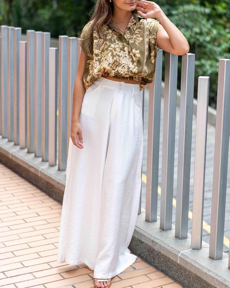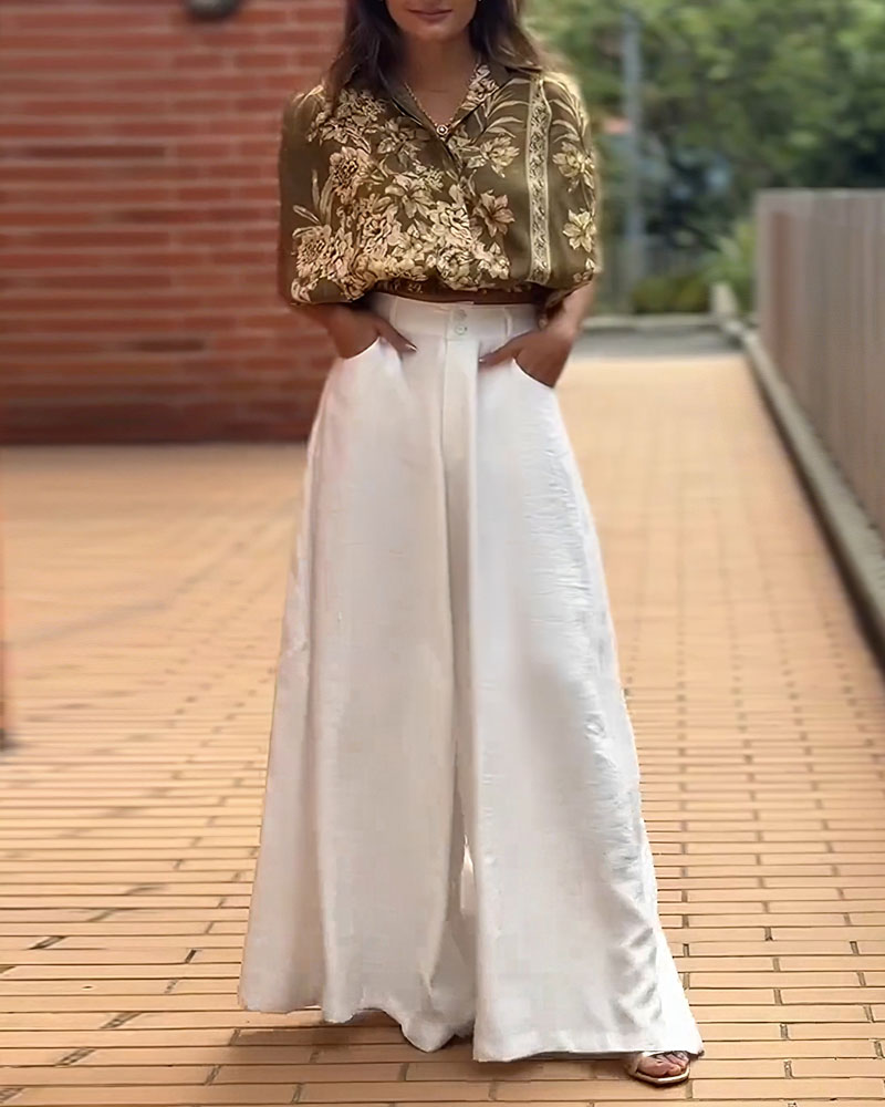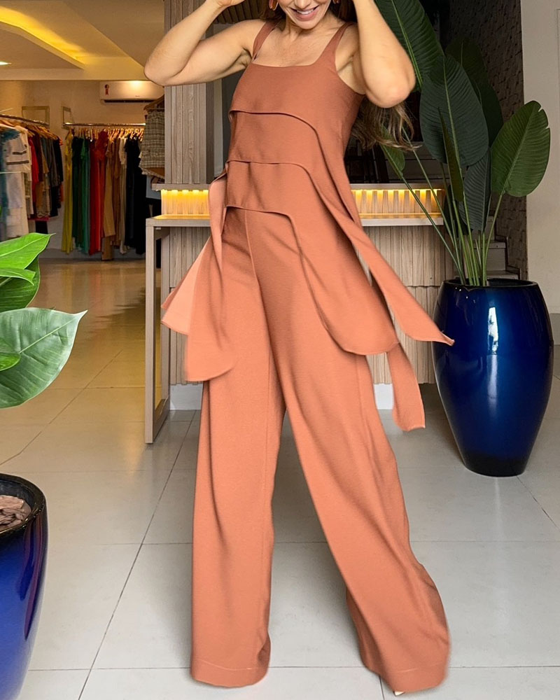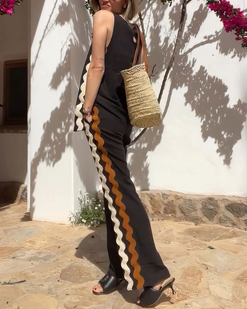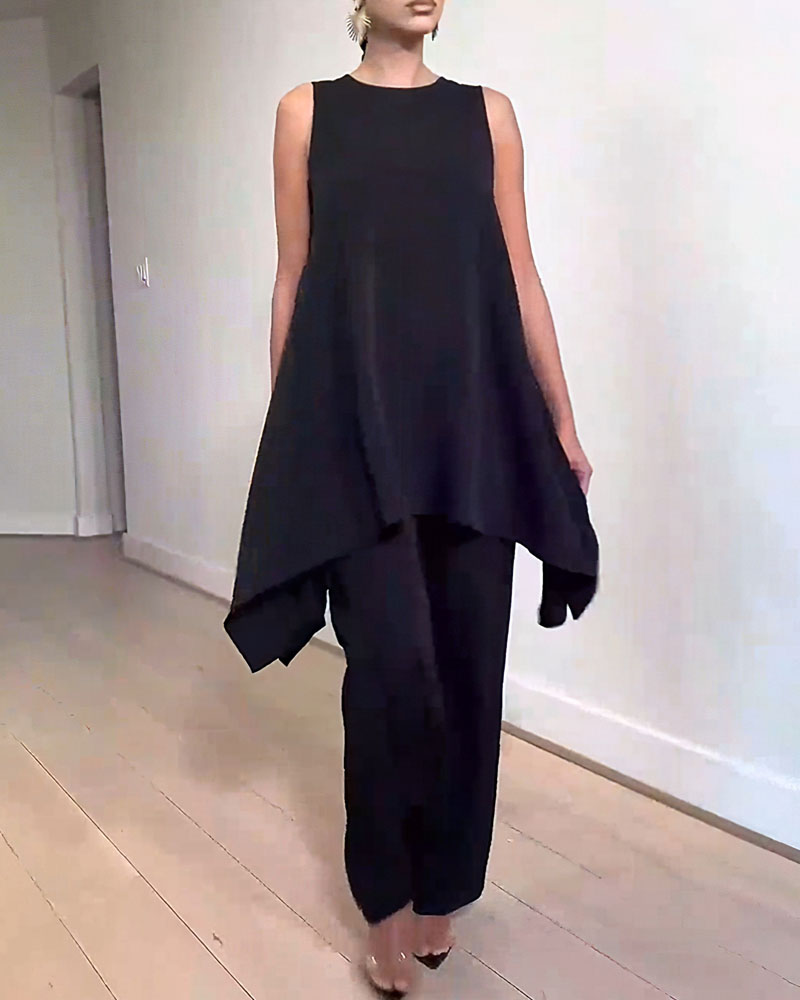 Tie-Drawstring Top and Straight-Leg Lounge Pants Set