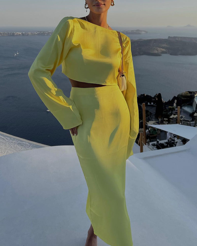 Crew neck long sleeve top and skirt set