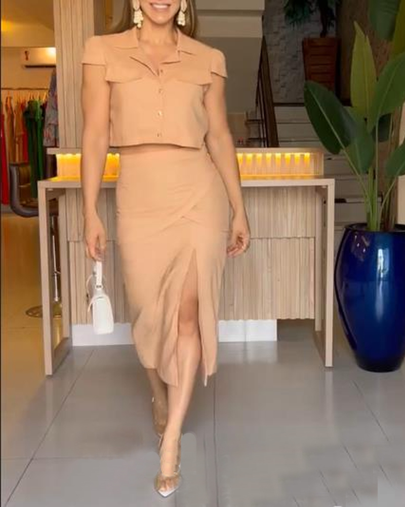 Product Name Short-sleeved Top and Slit Skirt Set
