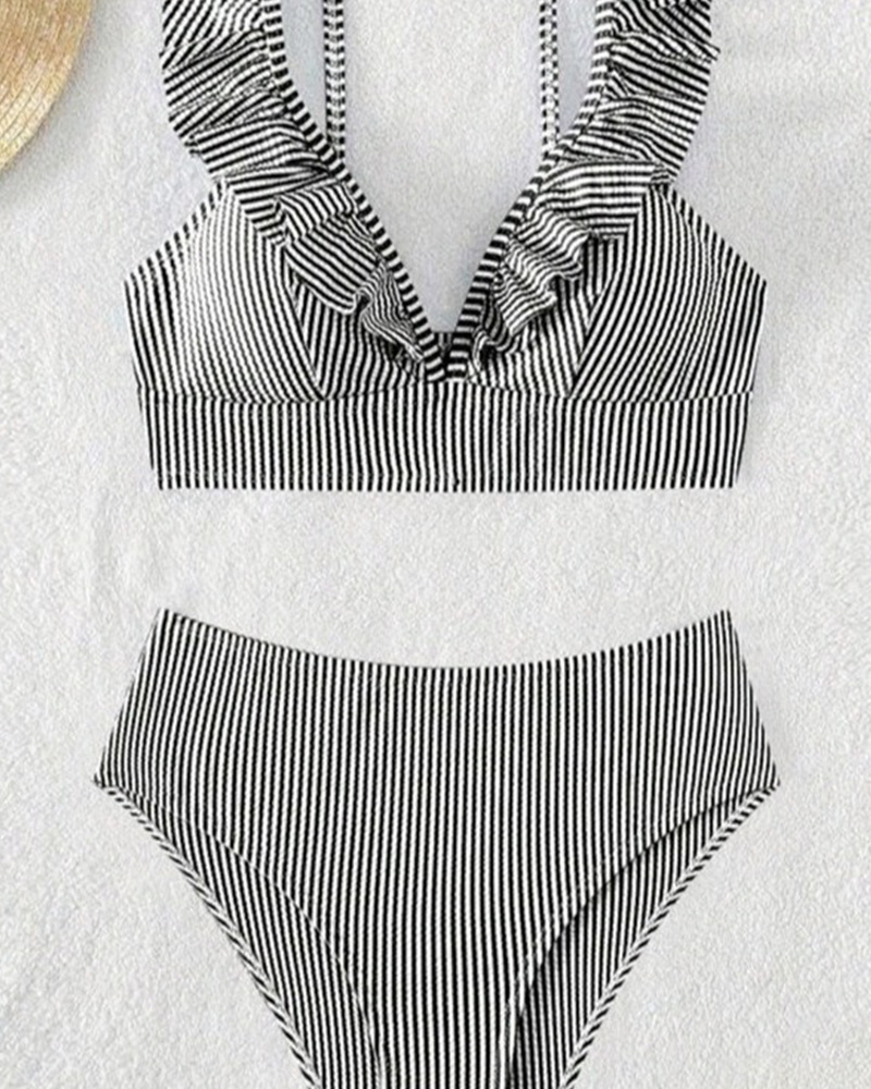 Product Name: Striped Ruffled Two-Piece Swimsuit